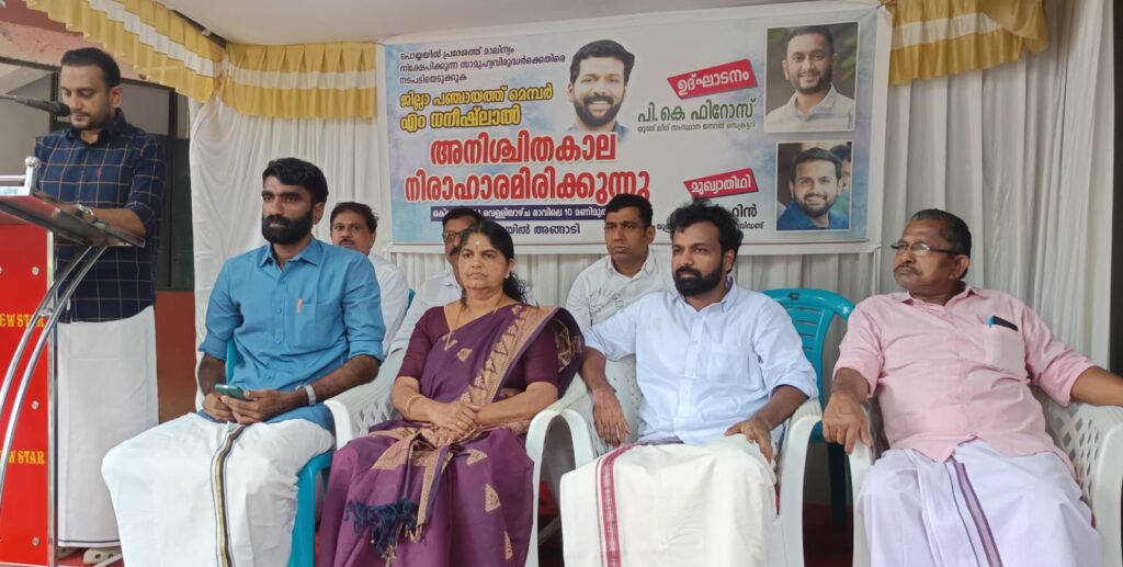 പിലാശ്ശേരി പൊയ്യയിൽ ജലസോ ത്രസുകളിൽ സ്ഥിരമായി ശുചി മുറി മാലിന്യം തള്ളുന്ന സാമൂഹ്യ വിരുദ്ധർക്കെതിരിൽ നടപടിയെടുക്കണമെന്നാവശ്യപ്പെട്ട് ജില്ലാ പഞ്ചായത്ത് മെമ്പർ എം ധനീഷ് ലാൽ പൊയ്യയിൽ രാവിലെ പത്ത് മുതൽ അനിശ്ചിതകാല നിരാഹാരം സമരം തുടങ്ങി, മുസ്ലിം യൂത്ത് ലീഗ് സംസ്ഥാന ജനറൽ സെക്രട്ടറി പി കെ ഫിറോസ് ഉദ്ഘാടനം ചെയ്തു. ഗ്രാമ പഞ്ചായത്ത് അംഗം ലീന വാസുദേവൻ, ബ്ലോക്ക് മെമ്പർ ബാബു നെല്ലൂളി,സി വി ഷംജിത്ത്, എം പി കേളുക്കുട്ടി,