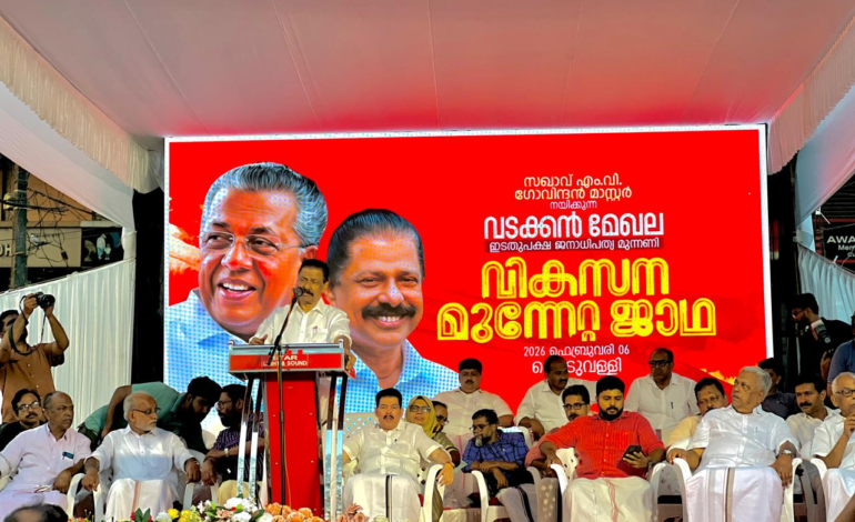 നിറഞ്ഞുകവിഞ്ഞ സദസിനു മുന്നിൽ ജാഥാ അംഗങ്ങൾക്കൊപ്പം