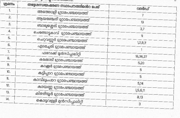 കോഴിക്കോട് ജില്ലയിൽ രോഗവ്യാപനം കൂടുന്ന പശ്ചാത്തലത്തിൽ കൂടുതൽ വാർഡുകൾ കണ്ടൈൻ മെന്റ് ക്രിട്ടിക്കൽ കണ്ടെയിൻ മെന്റ് സോണുകളാക്കി തിരിച്ചു കൊണ്ട് കളക്ടർ ഉത്തരവിറക്കി.