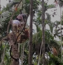 കുന്ദമംഗലം പിലാശ്ശേരിയിൽ മരം മുറിക്കാനായി കയറിയ പടനിലം വള്ളിയാട്ടുമ്മൽ സുരേഷിനാണ് 35 അടി ഉയരത്തിൽ എത്തിയപ്പോൾ തലകറങ്ങിയത്.പ്ളാവ് മുറിക്കാനാണ് സുരേഷ് മരത്തിൽ കയറിയത് തുടർന്ന് തലചുറ്റുകയായിരുന്നു.ശേഷം രാജീവൻ എന്ന വ്യക്തി മരത്തിന് മുകളിൽ കയറുകയും സുരേഷിനെ മരത്തിൽ കയറി കെട്ടുകയും ചെയ്തു.തുടർന്ന് നരിക്കുനി ഫയർഫോഴ്സ് എത്തി ഡിപ്പാർട്ട്മെന്റ് ഉദ്യോഗസ്ഥൻ കെ പി സത്യന്റെ നേതൃത്വത്തിൽ ലാഡറിൽ കയറ്റി റെസ്ക്യു നെറ്റിൽ സുരക്ഷിതമായി താഴെ എത്തിക്കുകയായിരുന്നു.നാട്ടുകാരുടെയും ഉദ്യോഗസ്ഥരുടെയുംസംയോജിതമായ ഇടപെടൽ ഒരു ദുരന്തം ഒഴിവാക്കി.മറ്റ് ഉദ്യോഗസ്ഥരായ ASTO-പി ഒ വർഗീസ് ,SFROഎൻ ഗണേശൻ ,FRO നിബിൻ ദാസ് ,FRO സിജിത്ത് ,FROസന്ദീപ് ,FRO(D)അജികുമാർ , FRO(D) കെ പി സത്യൻ , എച്ച് ജി രാജേഷ് ,പ്രകാശൻ എന്നിവരാണ് നേതൃത്വം നൽകിയത്