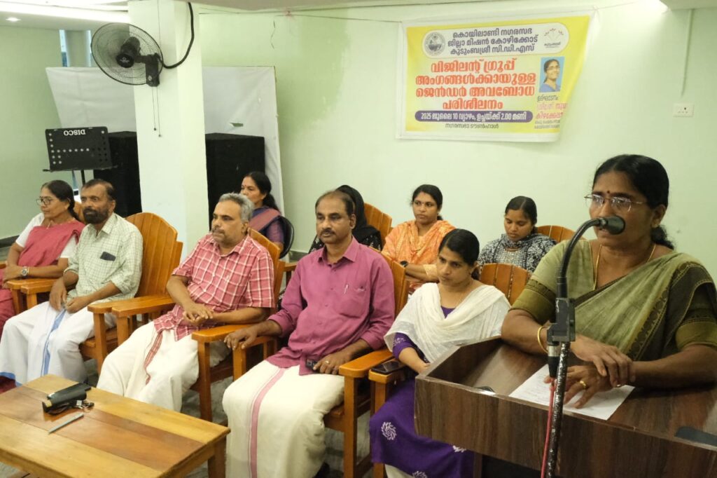 കൊയിലാണ്ടി നഗരസഭയിലെ വാര്ഡുകളിലെ ജാഗ്രതസമിതി അംഗങ്ങള്ക്ക് ജെന്ഡര് അവബോധ ക്ലാസ്സ് സംഘടിപ്പിച്ചു. കൊയിലാണ്ടി നഗരസഭ കുടുംബശ്രീ സിഡിഎസിന് കീഴിലുള്ള ജിആര്സിയുടെ ഭാഗമായി ജില്ലാ മിഷന്റെ സഹകരണത്തോടെ സംഘടിപ്പിച്ച ക്ലാസ്സ് നഗരസഭ ചെയര്പേഴ്സണ് സുധ കിഴക്കേപ്പാട്ട് ഉദ്ഘാടനം ചെയ്തു. നഗരസഭ വൈസ് ചെയര്മാന് അഡ്വ. കെ സത്യന് അധ്യക്ഷത വഹിച്ചു.