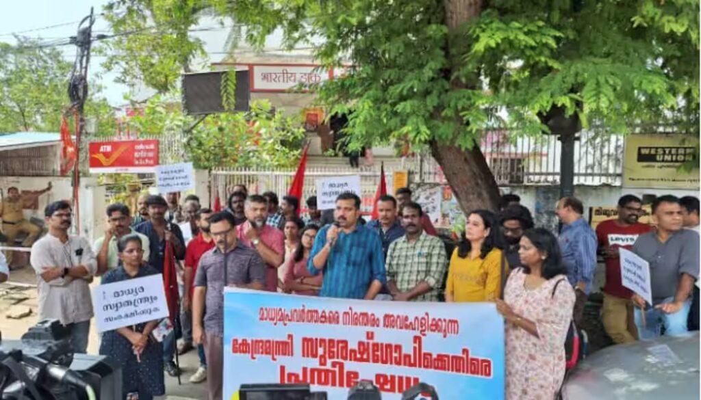 മാധ്യമപ്രവര്ത്തകരെ നിരന്തരം അവഹേളിക്കുന്ന കേന്ദ്രമന്ത്രി സുരേഷ് ഗോപിയുടെ നടപടികളില് പ്രതിഷേധിച്ച് കേരള പത്രപ്രവര്ത്തക യൂണിയന് (കെ.യു.ഡബ്ല്യു.ജെ) തിരുവനന്തപുരം ജില്ലാ കമ്മിറ്റിയുടെ നേതൃത്വത്തില് മാര്ച്ചും ധര്ണയും നടത്തി. പുളിമൂട് കേസരി മന്ദിരത്തിനു മുന്നില് നിന്ന് ആരംഭിച്ച പ്രതിഷേധ മാര്ച്ച് സെക്രട്ടേറിയറ്റ് ചുറ്റി ജനറല് പോസ്റ്റ് ഓഫിസിനു മുന്നില് സമാപിച്ചു. തുടര്ന്നു നടന്ന ധര്ണ സംസ്ഥാന സെക്രട്ടറി ബി.അഭിജിത്ത് ഉദ്ഘാടനം ചെയ്തു. ജില്ലാ പ്രസിഡന്റ് ഷില്ലര് സ്റ്റീഫന് അധ്യക്ഷത വഹിച്ചു. മുന് സംസ്ഥാന ജനറല് സെക്രട്ടറി ആര്. കിരണ് ബാബു, സംസ്ഥാന വൈസ് പ്രസിഡന്റ് കൃപ പി.എം., സംസ്ഥാന കമ്മിറ്റി അംഗം, ഷീജ എസ്, ജില്ലാ സെക്രട്ടറി അനുപമ ജി. നായര്, അലക്സ് റാം മുഹമ്മദ് എന്നിവര് പ്രസംഗിച്ചു. സംസ്ഥാന കമ്മിറ്റി അംഗങ്ങളായ പ്രജീഷ് കൈപ്പള്ളി, ലേഖാരാജ് എം.ആർ, ബൈജു ടി.എം, ജില്ലാ വൈസ് പ്രസിഡന്റ് ഒ രതി, കമ്മിറ്റി അംഗങ്ങളായ ഷൈജു ചാവശ്ശേരി, മഹേഷ് ബാബു, ശരത് കുമാര് എസ്, ഭാഗ്യരാജ് എസ്, അരുണ് സി.എസ് തുടങ്ങിയവര് നേതൃത്വം നല്കി.