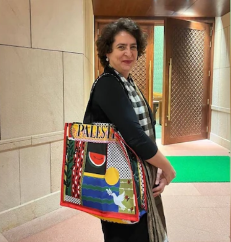 അതേസമയം, ഫലസ്തീൻ എന്നെഴുതിയ ബാഗുമായെത്തിയ പ്രിയങ്കയെ പരിഹസിച്ച് ബിജെപി നേതാവ് സംബിത് പത്ര രംഗത്തെത്തി. കോൺഗ്രസ് കുടുംബം എപ്പോഴും പ്രീണനത്തിന്റെ ബാഗാണ് തൂക്കിക്കൊണ്ടിരിക്കുന്നതെന്നും പ്രീണന ബാഗാണ് അവരുടെ തിരഞ്ഞെടുപ്പ് പരാജയത്തിന്റെ കാരണമെന്നും അദ്ദേഹം വിമർശിച്ചു.