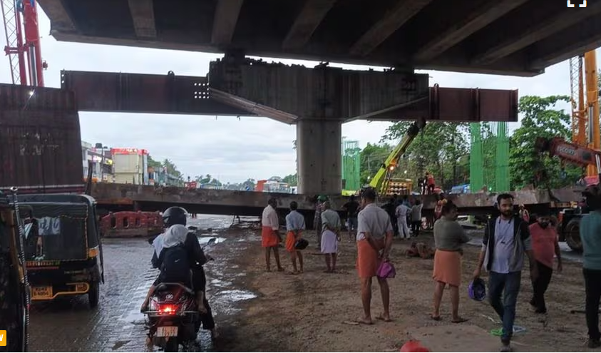 വേറെ സ്ഥലത്തുവെച്ച് പണിഞ്ഞുകൊണ്ട് വരുന്ന ഗര്ഡര് പാലത്തില് ഉറപ്പിക്കാന് ശ്രമിക്കുന്നതിനിടെയാണ് നിലംപതിച്ചത്. ഇരുമ്പ് റോപ്പ് പൊട്ടിയതാണ് 80 ടണ് ഭാരവും 24 മീറ്റര് നീളവുമുള്ള ഗര്ഡര് താഴെ വീഴാന് കാരണം എന്നാണ് വിവരം.
