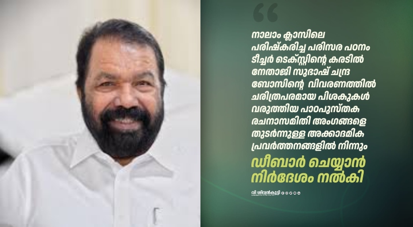 പാഠ്യപദ്ധതി പരിഷ്കരണവുമായി ബന്ധപ്പെട്ട് നാലാം ക്ലാസിലെ പരിഷ്കരിച്ച പരിസര പഠനം ടീച്ചര് ടെക്സ്റ്റിന്റെ കരടില് നേതാജി സുഭാഷ് ചന്ദ്ര ബോസിന്റെ വിവരണത്തില് ചരിത്രപരമായ ചില പിശകുകള് സംഭവിച്ചതായി അറിയാന് കഴിഞ്ഞുവെന്ന് മന്ത്രി കുറിച്ചു. ഈ വിഷയം ശ്രദ്ധയില് പെട്ടപ്പോള് തന്നെ അതില് തിരുത്തലുകള് വരുത്താനും ചരിത്രപരമായ വസ്തുകള് ചേര്ത്തു മാത്രമേ പുസ്തകം പ്രിന്റ് ചെയ്യാവൂ എന്ന നിര്ദ്ദേശം എസ്.സി.ഇ.ആര്.ടി.ക്ക് നല്കിയിട്ടുണ്ട്. തിരുത്തലുകള് വരുത്തിയ പാഠഭാഗം ഇപ്പോള് എസ്.സി.ഇ.ആര്.ടി. വെബ്സൈറ്റില് ലഭ്യമാണ്. ചരിത്ര വസ്തുതകളെ രാഷ്ട്രീയ ലക്ഷ്യത്തിന് വേണ്ടി വളച്ചൊടിക്കുന്ന കേന്ദ്രസര്ക്കാറിന്റെ നിലപാടല്ല ഈ കാര്യത്തില് സംസ്ഥാന സര്ക്കാറിനുള്ളത്. ഭരണഘടനാ ലക്ഷ്യങ്ങള് ഉയര്ത്തിപ്പിടിക്കുന്ന ചരിത്ര വസ്തുതകളെ യാഥാര്ത്ഥ്യബോധത്തോടെ കുട്ടികളിലെത്തിക്കുക എന്ന നയമാണ് ഈ പാഠ്യ പദ്ധതി പരിഷ്കരണ വേളയിലെല്ലാം തന്നെ നാം സ്വീകരിച്ചിരിക്കുന്നത്. അത് തുടരുക തന്നെ ചെയ്യും – അദ്ദേഹം വ്യക്തമാക്കി.