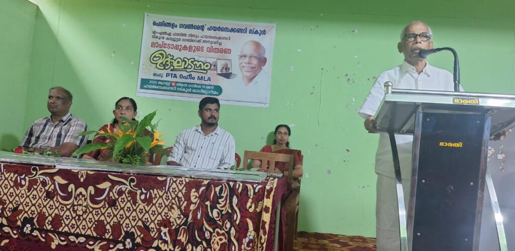 പെരിങ്ങൊളം ഗവ. ഹയർ സെക്കൻ്ററി സ്കൂളിന് വേണ്ടി നൽകിയ 10 ലാപ്ടോപ്പ് കമ്പ്യൂട്ടറുകളുടെ സമർപ്പണം പി.ടി.എ റഹീം എംഎൽഎ പെരിങ്ങൊളം ഗവ. ഹയർ സെക്കൻ്ററി സ്കൂൾ ലാപ്ടോപ്പുകളുടെ സമർപ്പണം പി.ടി.എ റഹീം എംഎൽഎ നിർവഹിച്ചു. എംഎൽഎയുടെ പ്രാദേശിക വികസന ഫണ്ടിൽ നിന്ന് അനുവദിച്ച 3.52 ലക്ഷം രൂപ വിനിയോഗിച്ചാണ് കമ്പ്യൂട്ടറുകൾ വാങ്ങി നൽകിയത്. വിവിധ പരിപാടികളിൽ മികവ് തെളിയിച്ച വിദ്യാർത്ഥികൾക്കുള്ള സർട്ടിഫിക്കറ്റ് വിതരണവും എംഎൽഎ നിർവ്വഹിച്ചു.