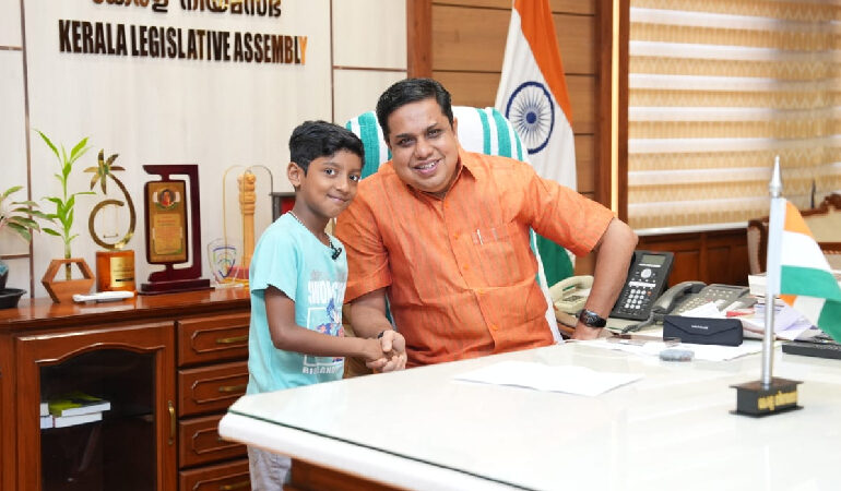 കൊച്ചുമിടുക്കൻ അഹാൻ മാതാപിതാക്കളോടൊപ്പം ഇന്ന് നിയമസഭാ മന്ദിരത്തിൽ വന്ന് കണ്ടിരുന്നു. പരസ്പര സ്നേഹത്തിന്റെ മൂല്യങ്ങൾ ഉൾക്കൊണ്ടുകൊണ്ട് ഒരുപാട് ഉയരങ്ങളിലെത്താൻ അഹാന് സാധിക്കട്ടെ എന്നാശംസിക്കുന്നു.”