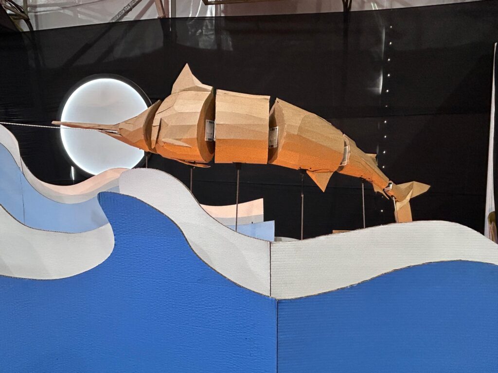 ആത്മവിശ്വാസവും ധൈര്യവും  ഉണ്ടെങ്കിൽ ഏത് പ്രതിസന്ധിയെയും  അതിജീവിക്കാൻ കഴിയുമെന്ന് പ്രചോദനം നൽകുന്ന ഏണസ്റ്റ് ഹെമിംഗ്‌വേ യുടെ ദി ഓൾഡ് മാൻ ആൻഡ് ദ സീ  കൃതിയെ ആസ്പദമാക്കി തയ്യാറാക്കിയ മോഡൽ ജനശ്രദ്ധ നേടുന്നു.ഫാബ്ലാബ് ടീം കാർഡ് ബോർഡ് കൊണ്ടാണ് മോഡൽ നിർമ്മിച്ചിരിക്കുന്നത്. മെഷീൻ ഉപയോഗിച്ച് കാർഡ് ബോർഡുകൾ ഉപയോഗിച്ച് ഏത് ഫർണീച്ചറും നിർമ്മിക്കാൻ കഴിയും.കേരളം പോലുള്ള കൊച്ചു സംസ്ഥാനത്ത് പരിമിതിക്കുള്ളിൽ നിന്ന് സ്റ്റാർട്ടപ്പ് ആശയങ്ങളും മറ്റും സാധ്യമാണെന്ന് തെളിക്കുന്നതാണ് കേരള ലിറ്ററേച്ചർ ഫെസ്റ്റിലെ മോഡൽ. ദിവസങ്ങളോളം നീണ്ട പരിശ്രമത്തിന്റെ ഫലമാണിതെന്ന് ടീം അംഗങ്ങൾ പറയുന്നു.
