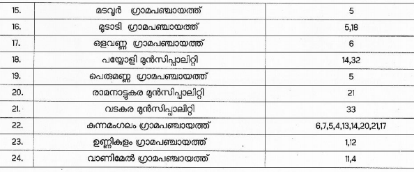 കുന്ദമംഗലം ഗ്രാമ പഞ്ചായത്തിലെ 6 ,7 5 ,4 ,13 ,14 20, 21, 17 എന്നീ വാർഡുകൾ എല്ലാം കണ്ടൈൻ മെന്റ്സോൺ ആണ്