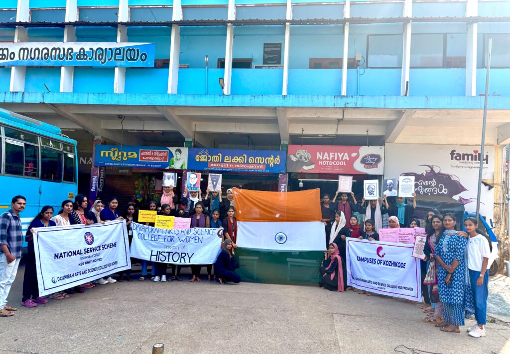 ഭരണഘടനാ മൂല്യവും, ജനാധിപത്യ പ്രക്രിയയിലെ തെരഞ്ഞെടുപ്പിൻ്റെ പ്രാധാന്യവും വ്യക്തമാക്കി ദയാപുരം വിദ്യാർത്ഥിനികൾ അവതരിപ്പിച്ച ” വി ദ പീപ്പിൾ ഓഫ് ഇന്ത്യ ” തെരുവുനാടക ജാഥ കുന്നമംഗലം ഗ്രാമപഞ്ചായത്ത് വിദ്യാഭ്യാസ സ്റ്റാൻഡിങ് കമ്മിറ്റി ചെയർമാനായ ചന്ദ്രൻ തിരുവലത്ത് ഉദ്ഘാടനം ചെയ്തു. ദയാപുരം കോളേജ് ചരിത്ര വിഭാഗം മേധാവി ശ്രീഷ്മ പി .വി, എൻ.എസ്.എസ് പ്രോഗ്രാം ഓഫീസർ എം. അഞ്ജു സുരേഷ്,ക്യാമ്പസസ് ഓഫ് കോഴിക്കോട് കോഡിനേറ്റർ ഗോപിക പ്രസന്നൻ , ദയാപുരം കോളേജ് അധ്യാപികയും മുൻ എൻ.എസ്.എസ് കോർഡിനേറ്ററുമായ