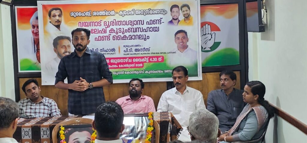 ഇന്ത്യൻ യൂത്ത് കോൺഗ്രസ് കുന്ദമംഗലം മണ്ഡലം മണ്ഡലം കമ്മറ്റിയുടെ നേതൃത്വത്തിൽ ധീര രക്തസാക്ഷികളായ ശുഹൈബ്,ശരത്ത് ലാൽ – കൃപേഷ് അനുസ്മരണവും യൂത്ത് കോൺഗ്രസ്സ് സംസ്ഥാന കമ്മറ്റി വയനാടിനായ് നിർമ്മിക്കുന്ന 30 വീടിനുള്ള ഫണ്ട് 50001 രൂപയും കലേഷ് കുടുംബ സഹായ ഫണ്ട് ഒന്നാം ഘട്ടം 15000 രൂപ കൈമാറലും നടത്തി. യൂത്ത് കോൺഗ്രസ് സംസ്ഥാന ജനറൽ സെക്രട്ടറി അഡ്വ. വി.ടി.നിഹാൽ ഉദ്ഘാടനം ചെയ്തു. മണ്ഡലം യൂത്ത് കോൺഗ്രസ് പ്രസിഡന്റ് കെ.അരുൺലാൽ അദ്ധ്യക്ഷത വഹിച്ചു. നിയോജക മണ്ഡലം യൂത്ത് കോൺഗ്രസ് പ്രസിഡന്റ് പി.ടി.അസീസ് മുഖ്യ പ്രഭാഷണം നടത്തി. ഡി സി സി ജനറൽ സെക്രട്ടറി വിനോദ് പടനിലം മുഖ്യാതിഥി ആയിരുന്നു. കുന്ദമംഗലം ബ്ലോക്ക് പഞ്ചായത്ത് മുൻ പ്രസിഡൻറ് ബാബു നെല്ലൂളി, ജവഹർ ബാൽ മഞ്ച് സംസ്ഥാന കോഡിനേറ്റർ ഷമീർ പി, കെ എസ് യു സംസ്ഥാന കൺവീനർ അതുല്യ, കുന്ദമംഗലം ബ്ലോക്ക് കോൺഗ്രസ് കമ്മറ്റി വൈസ് പ്രസിഡൻറുമാരായ എ.ഹരിദാസൻ മാസ്റ്റർ, ഷിജു മുപ്രമ്മൽ,കുന്ദമംഗലം ബ്ലോക്ക് കോൺഗ്രസ് കമ്മറ്റി ജനറൽ സെക്രട്ടറിമാരായ സുബ്രഹ്മണ്യൻ കോണിക്കൽ, ലാലുമോൻ, മണ്ഡലം കോൺഗ്രസ്സ് കമ്മറ്റി പ്രസിഡണ്ട് (ചുമതല ) സി.പി രമേശൻ, ദളിത് കോൺഗ്രസ്സ് ബ്ലോക്ക് പ്രസിഡണ്ട് ബൈജു മുപ്രമ്മൽ, പി ഷൗക്കത്തലി, ഷംസു പിലാശ്ശേരി, ദിനേഷ് കാരന്തൂർ യൂത്ത് കോൺഗ്രസ്റ്റ് അസംബ്ലി ജന: സെക്രട്ടറിമാരായ മനിൽലാൽ,മനുമോഹൻ, മഹേഷ് പടനിലം, ഷിജിൽ സി.സി, ഹനീഫ തെക്കയിൽ എന്നിവർ