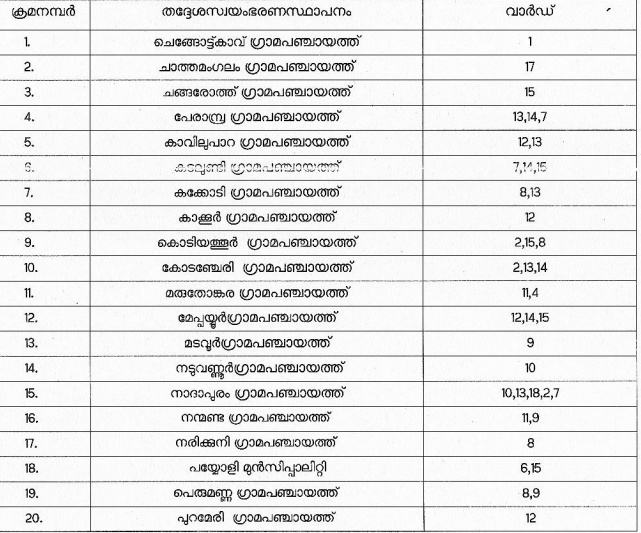 കോവിഡ് വ്യാപനം കൂടുന്ന പശ്ചാത്തലത്തിൽ കോഴിക്കോട് ജില്ലയിൽ ഏറ്റവും പുതിയ കുന്ദമംഗലം ഉൾപ്പടെയുള്ള പഞ്ചായത്തുകൾ കണ്ടൈൻ മെന്റ് സോണുകളായും,അതിവ്യാപനമുള്ള പ്രദേശങ്ങൾ ക്രിട്ടിക്കൽ കണ്ടൈൻ മെന്റ് സോണുകളായും കലക്ടർ പ്രഖ്യാപിച്ചു.
