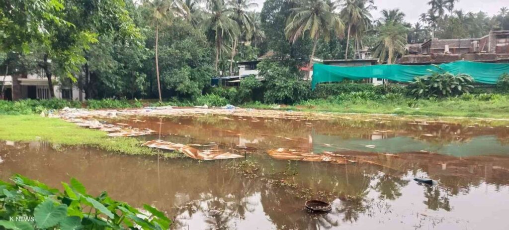 മഴ തുടങ്ങിയതോടെ പറമ്പിൽ വെള്ളം കെട്ടി നിൽക്കുകയാണ്.