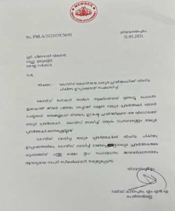 കോവിഡ് വ്യാപകമാവുന്ന സാഹചര്യത്തിൽ ജനങ്ങളുമായി നിരന്തരം ഇടപെട്ടു കൊണ്ട് ജോലി ചെയ്യുന്ന മാധ്യമ പ്രവർത്തകർക്കിടയിൽ രോഗ വ്യാപന സാധ്യത ഏറെയാണ്. മലയാളി മാധ്യമ പ്രവർത്തകരും കോവിഡ് ബാധിച്ചു മരണമടഞ്ഞിട്ടുണ്ട്. കോവിഡ് ബാധിതരായ മാധ്യമ പ്രവർത്തകർക്ക് വിദഗ്ധ ചികിത്സ ഉറപ്പാക്കണമെന്നും കോവിഡ് ബാധിച്ചു മരണപ്പെട്ട മാധ്യമ പ്രവർത്തകരുടെ കുടുംബത്തിന് 10 ലക്ഷം രൂപ സഹായം നൽകണമെന്നും നജീബ് കാന്തപുരം മുഖ്യമന്ത്രിക്ക് നൽകിയ നിവേദനത്തിൽ പറഞ്ഞു